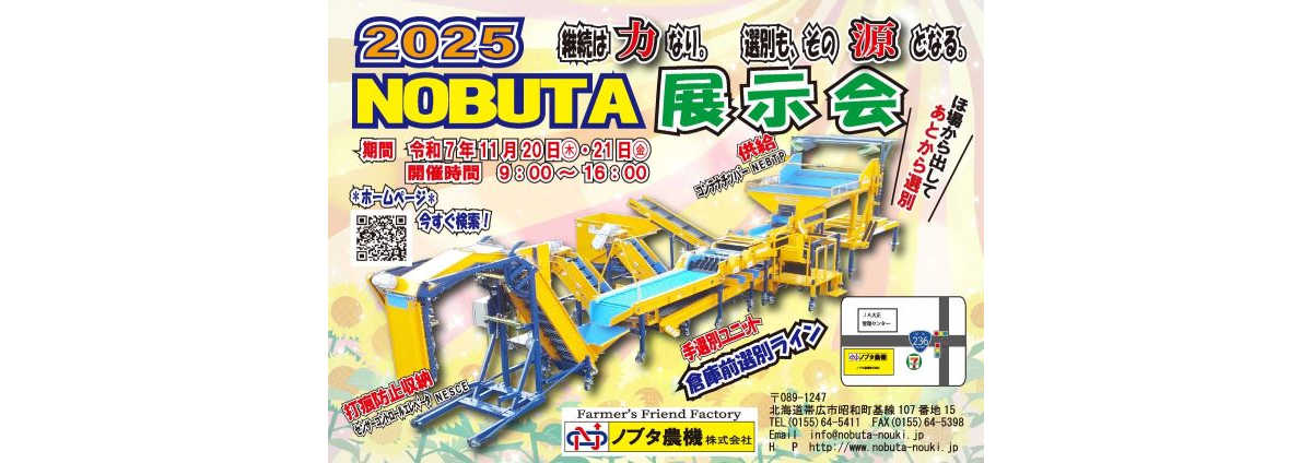 ノブタ農機株式会社は、農業の付加価値と効率向上の手段を提供する事により社会に貢献します。